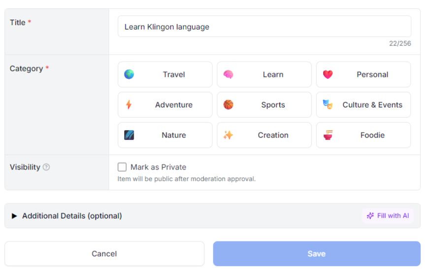 We're excited to share some impressive growth in the Bucketly catalog! We now boast 1,832 publicly available items, and it's continuously expanding! A huge thank you 🙏 to our new users who are already contributing and adding fresh items.