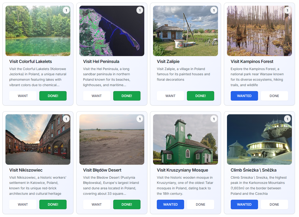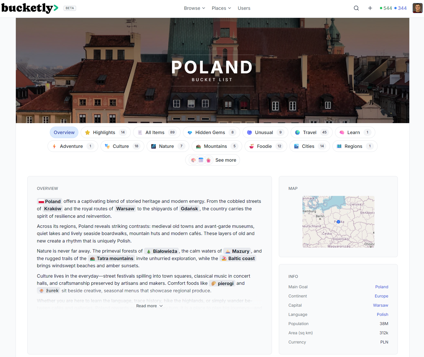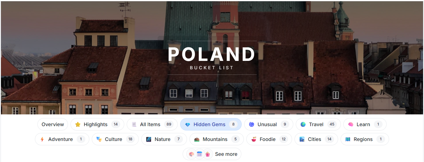 I've created one example topic page for my home country, Poland: πΒ bucketly.co/bucket-list/poland.