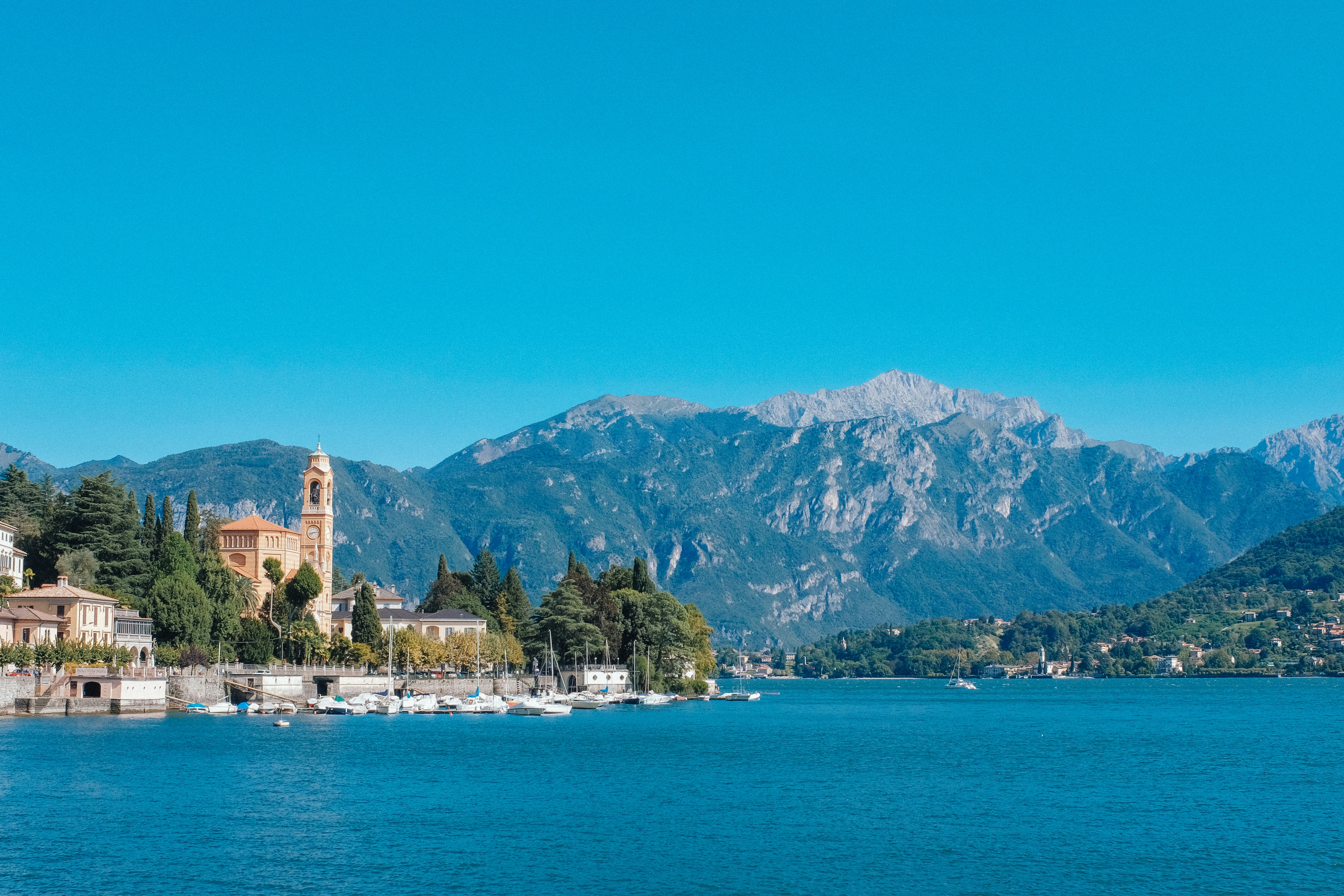 Visit the stunning Lake Como in Italy, known for its beautiful villas, charming towns, and scenic mountain backdrop.