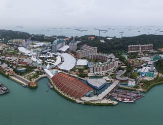 Visit the resort island of Sentosa in Singapore, known for its beaches, attractions, and entertainment