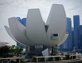 Visit the ArtScience Museum in Singapore, featuring a lotus-inspired design and interactive exhibitions blending art, science, and technology