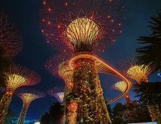 Attend the Garden Rhapsody, a spectacular light and sound show set in a beautiful garden environment in Gardens by the Bay in Singapore